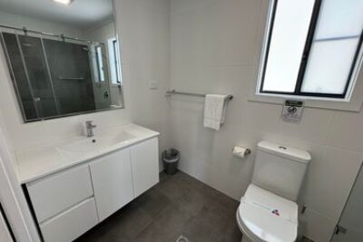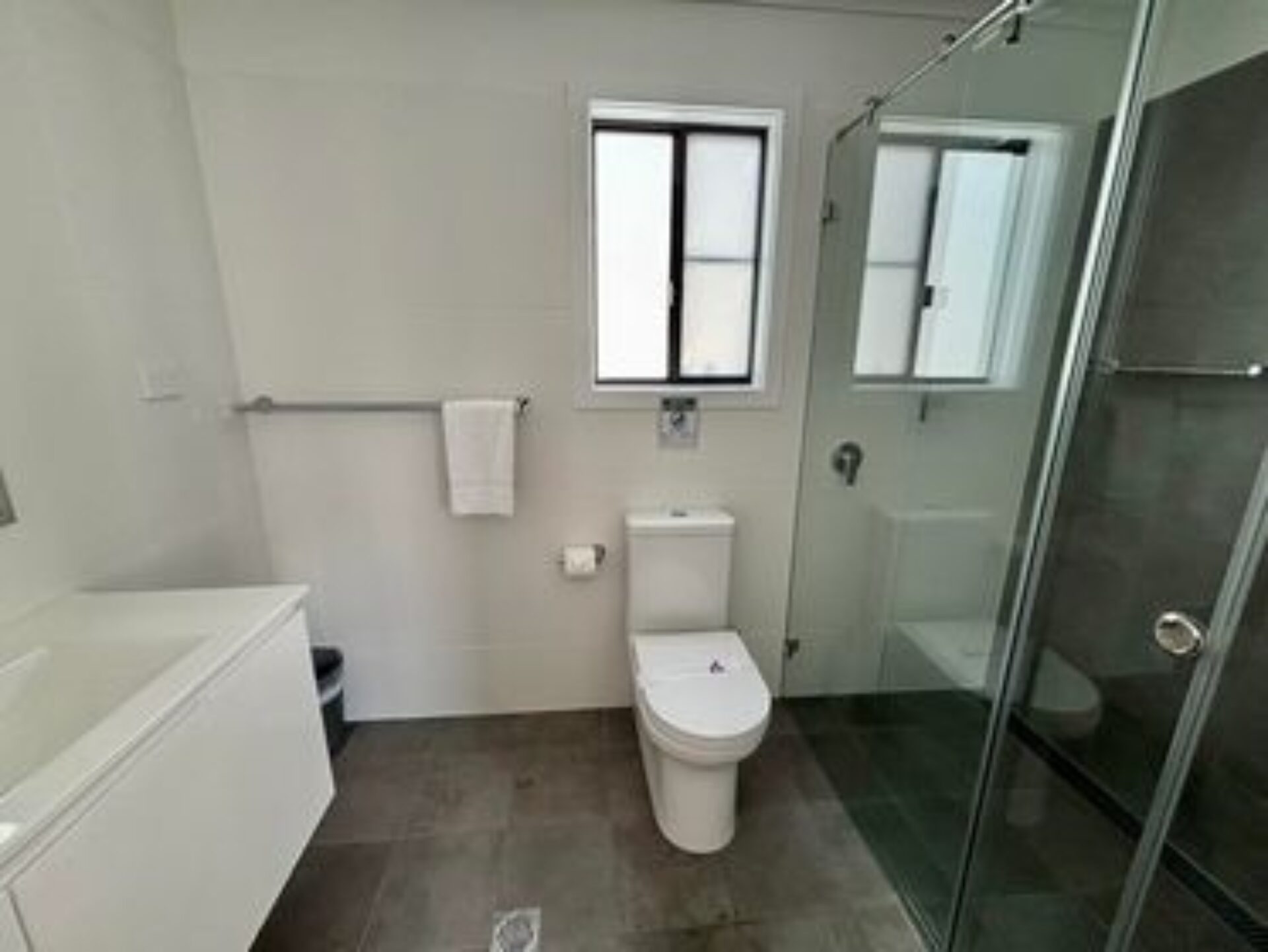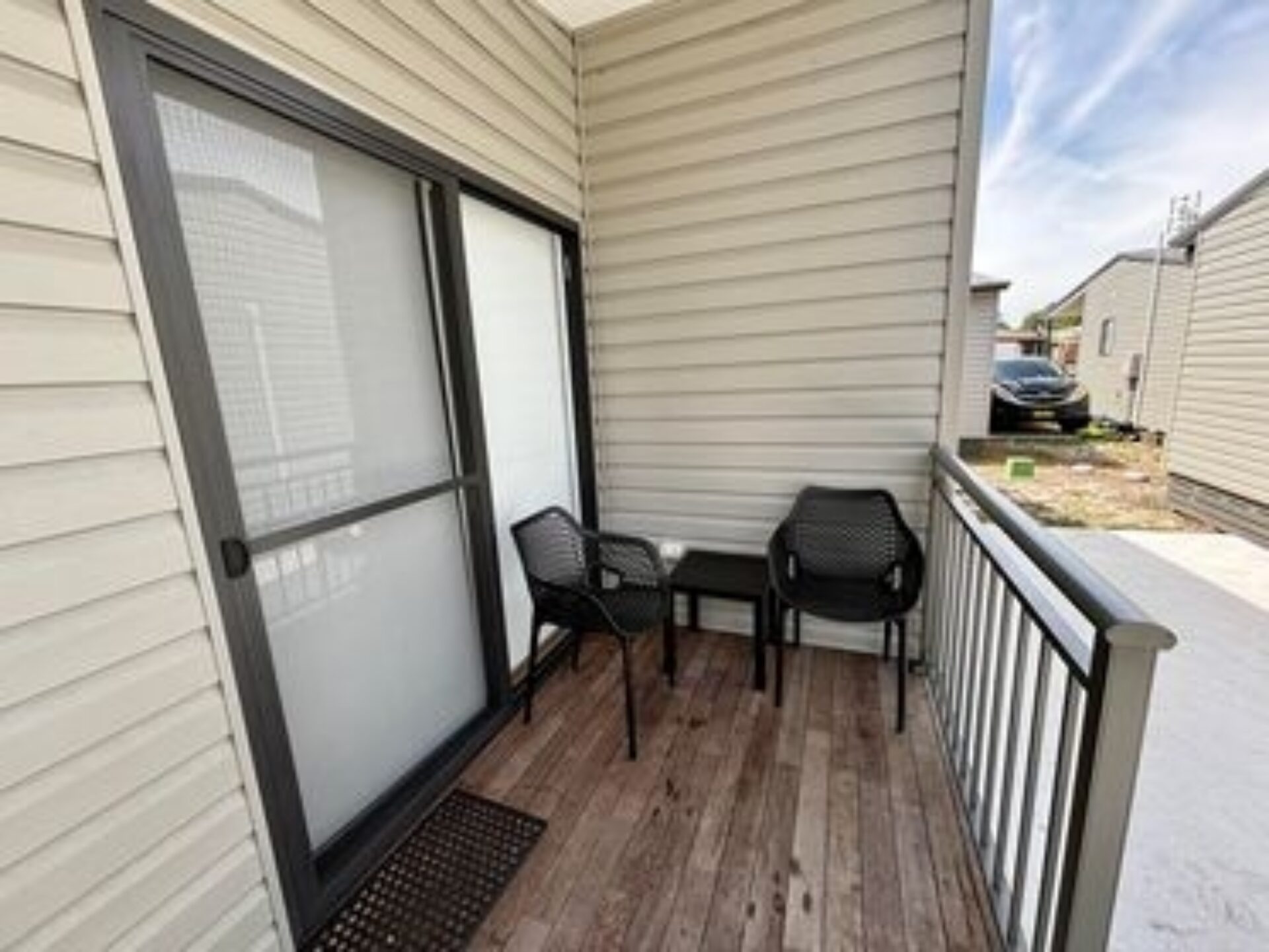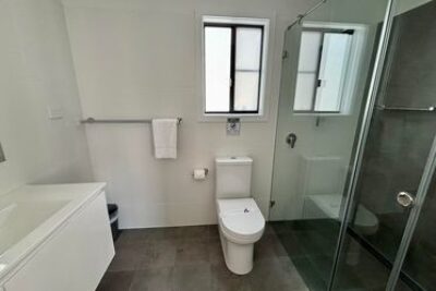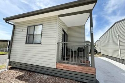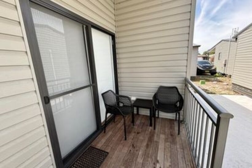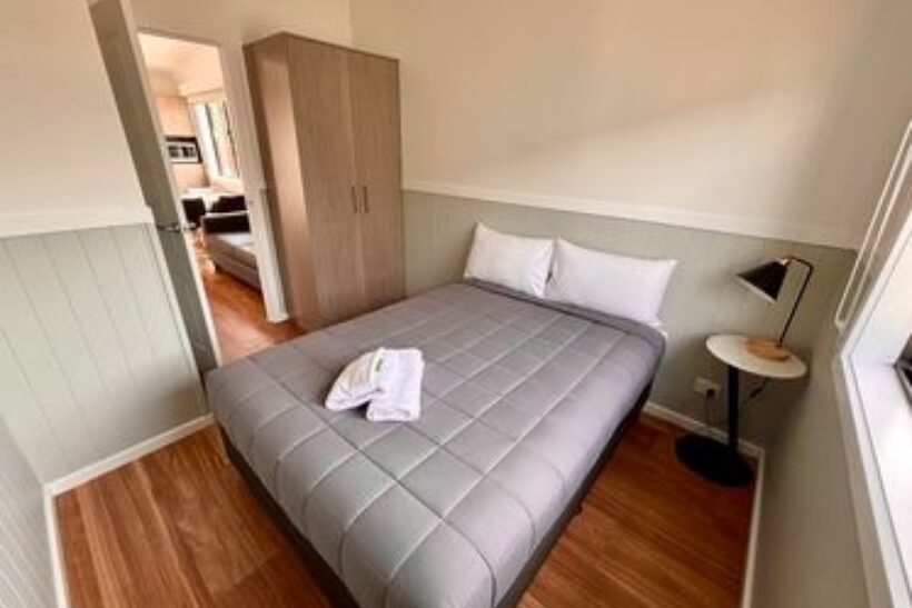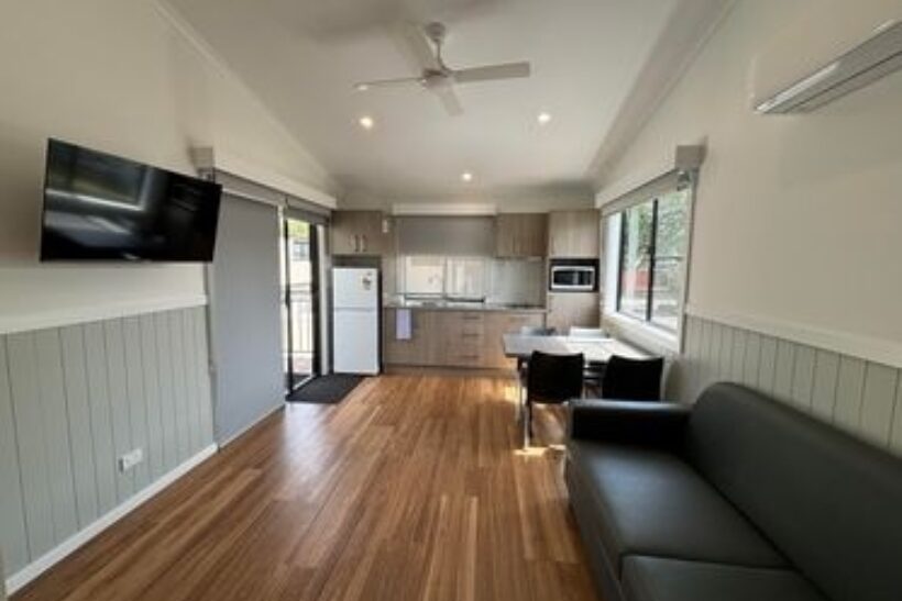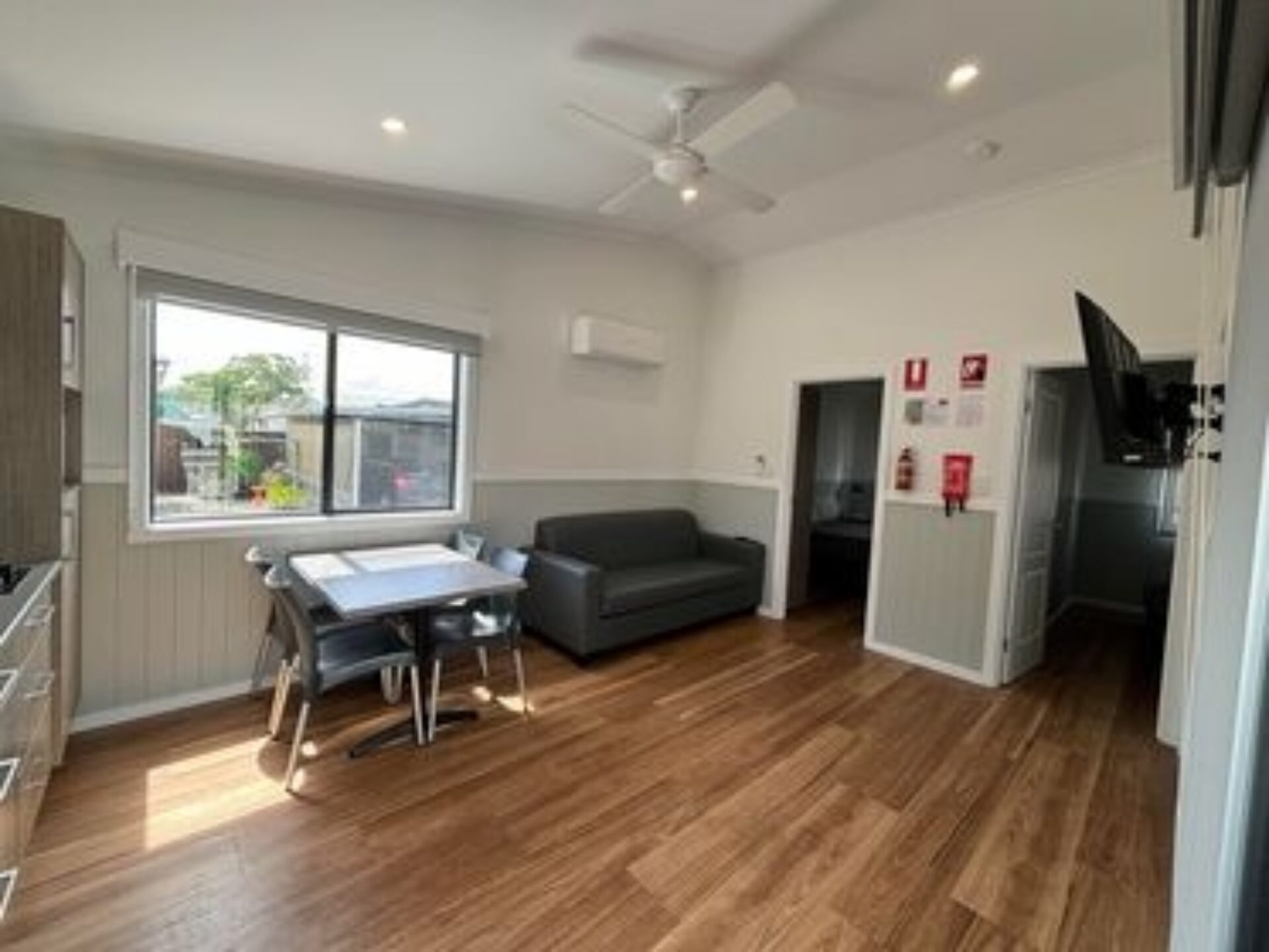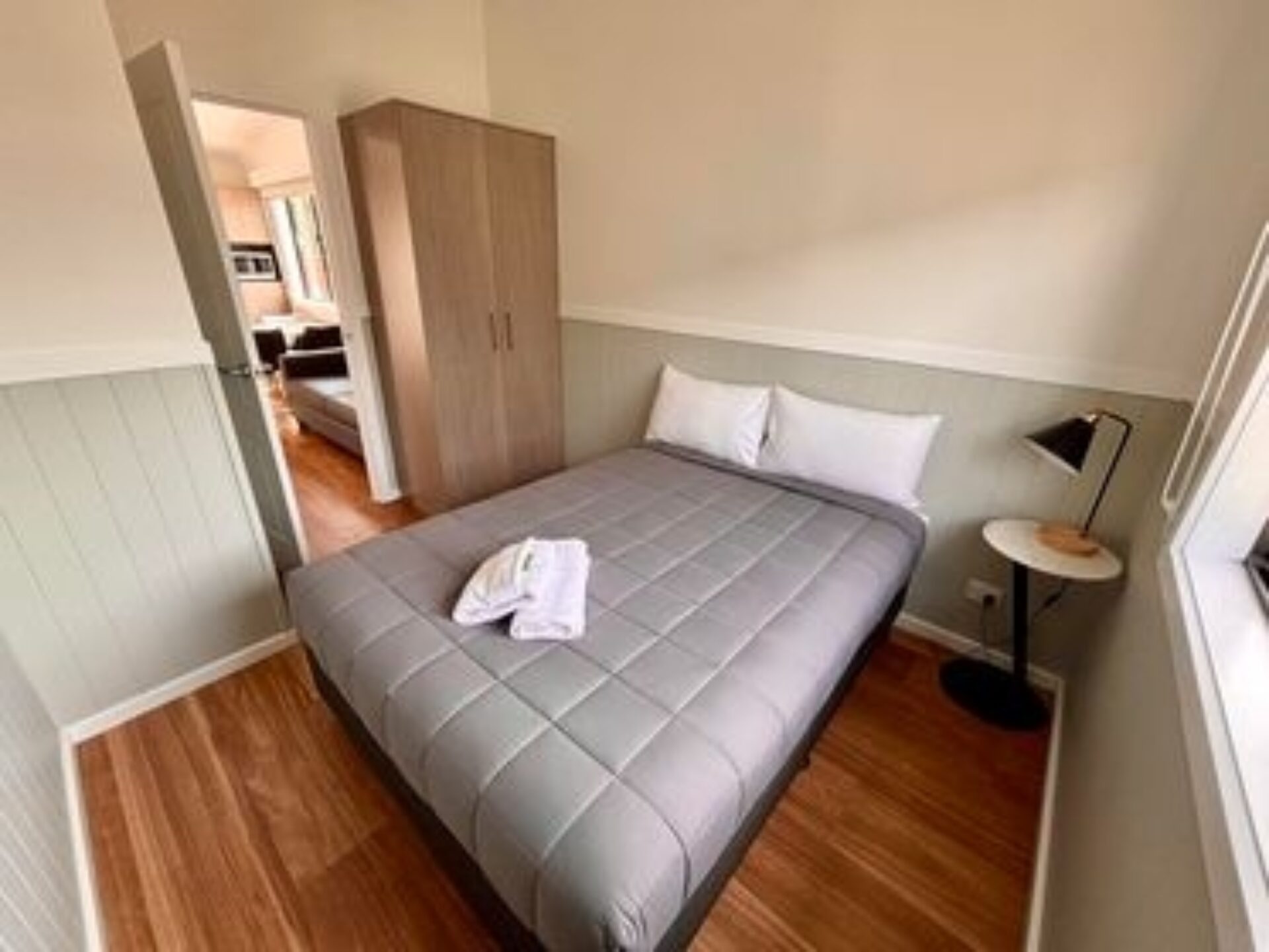 This two-bedroom villa sleeps up to four guests with a double bed in each room. The open-plan layout includes a modern kitchen with electric stovetop, microwave, and full-size fridge, along with a combined lounge and dining area. Air-conditioning and ceiling fans provide year-round comfort, making it an ideal option for families or small groups.