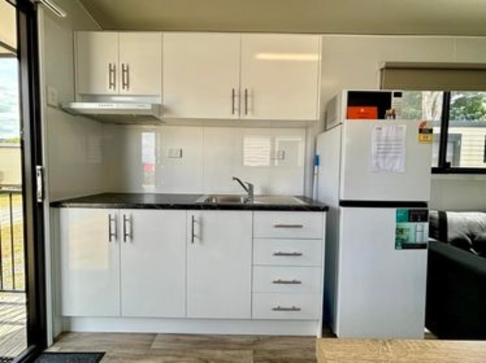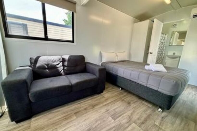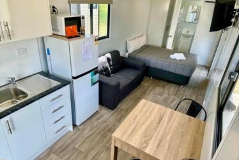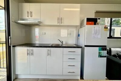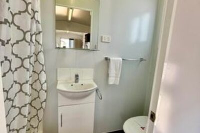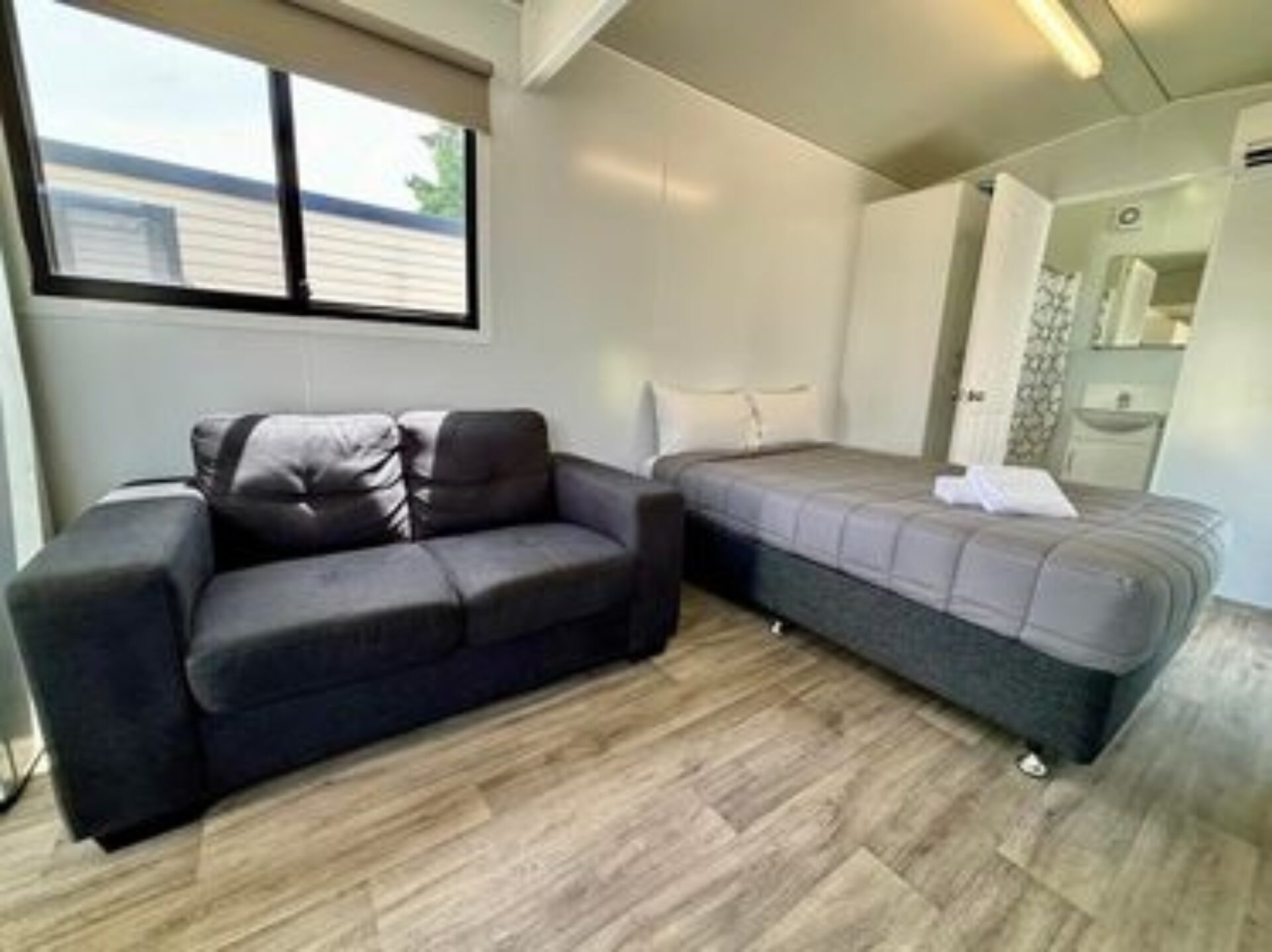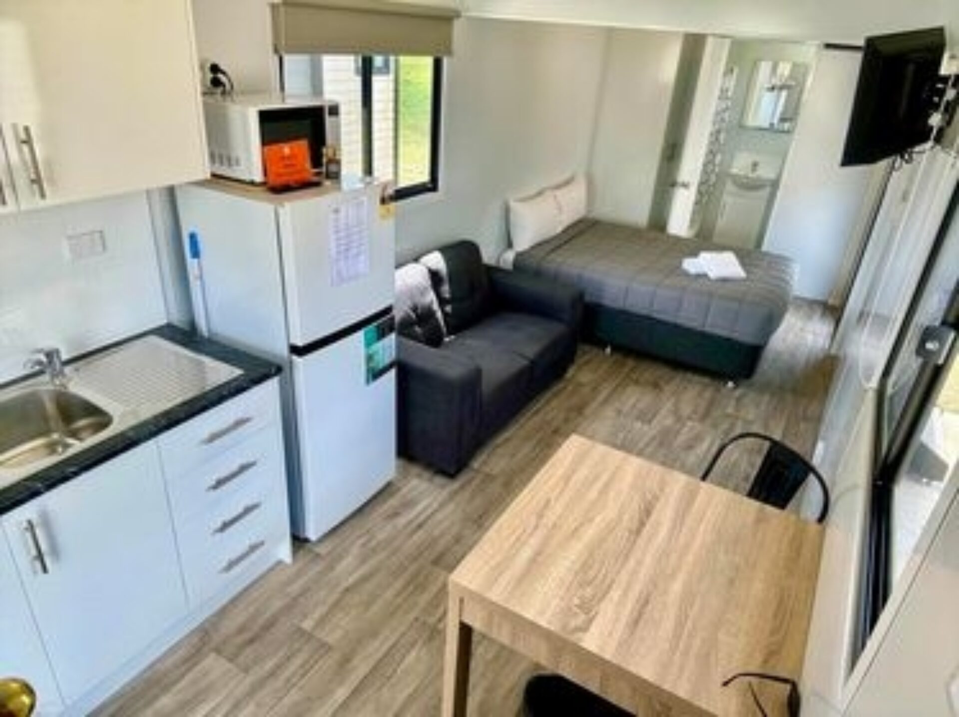 This studio sleeps two guests in a double bed. The kitchenette offers an electric stovetop, microwave, and full-size fridge or a bar fridge. Air-conditioning and ceiling fans ensure year-round comfort. A simple option for couples or solo travellers.